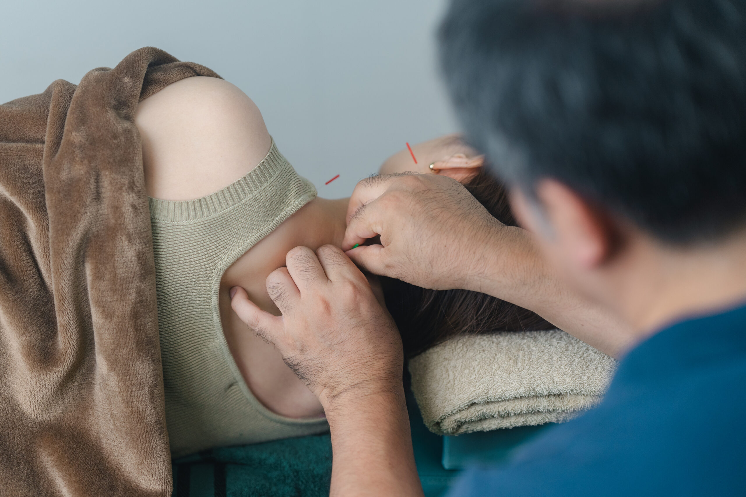 当院ではまず、鍼治療を用いて手技では届かない深層の筋肉に直接アプローチし、圧倒的に筋肉を緩めます。