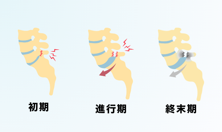 ・初期: 骨に微小な亀裂が入っただけの状態。