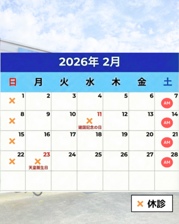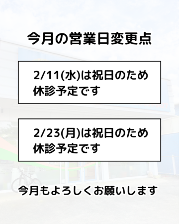 ・2/11(水)、2/23(月)は祝日のため休診予定です。